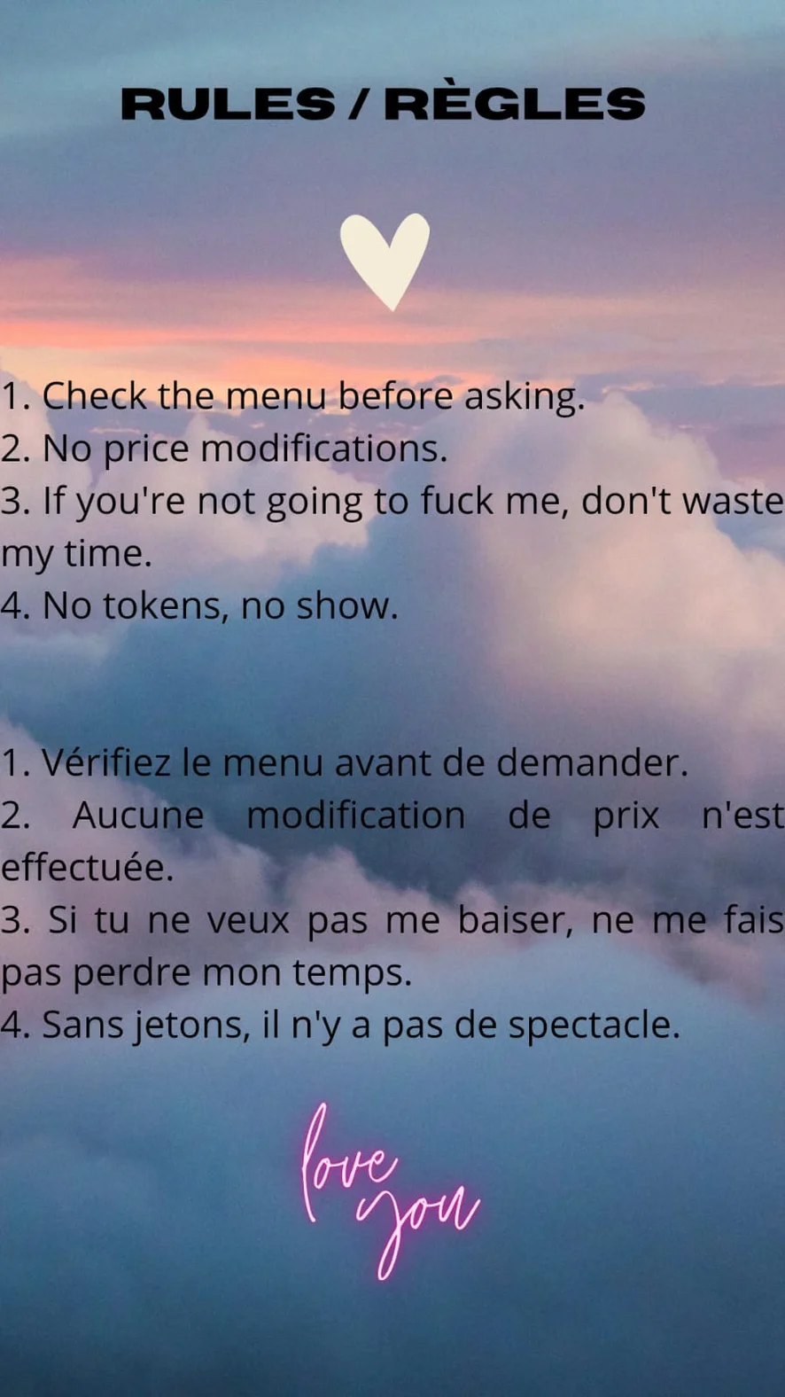All'aperto, Valutazione del cazzo, Ufficio, Sculacciate, Giocattoli per capezzoli, Pecorina, Ballo erotico, Ditalino, Dildo o Vibratore, Spogliarello, Pompino, Topless, Twerk, Zoccolo di cammello, Fumo, Orgasmo, Hardcore, Anale, Doppia Penetrazione, Gola profonda, Masturbazione, Spettacolo con olio, Squirt, Donna sopra, Tittyfuck, Giocattoli erotici, Feticismo dei piedi, Cosplay